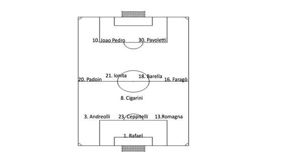La compagine guidata da Diego Lopez si mette in campo con una 3-5-2 particolarmente dinamico: una difesa di posizione, abile nel gioco aereo e discreta a livello tecnico, su tutti il giovane Romagna, un centrocampo di sostanza e corsa in cui mette ordine l'esperto Cigarini, accompagnato da due mezzali valide come Ionita e Barella: il moldavo mette a disposizione tanta corsa e resistenza, il secondo, invece, ha tecnica e dinamismo. Infine un reparto avanzato che può contare sui gol e la fisicità di Pavoletti, accompagnate dalla fantasia del brasiliano JoaoPedro.