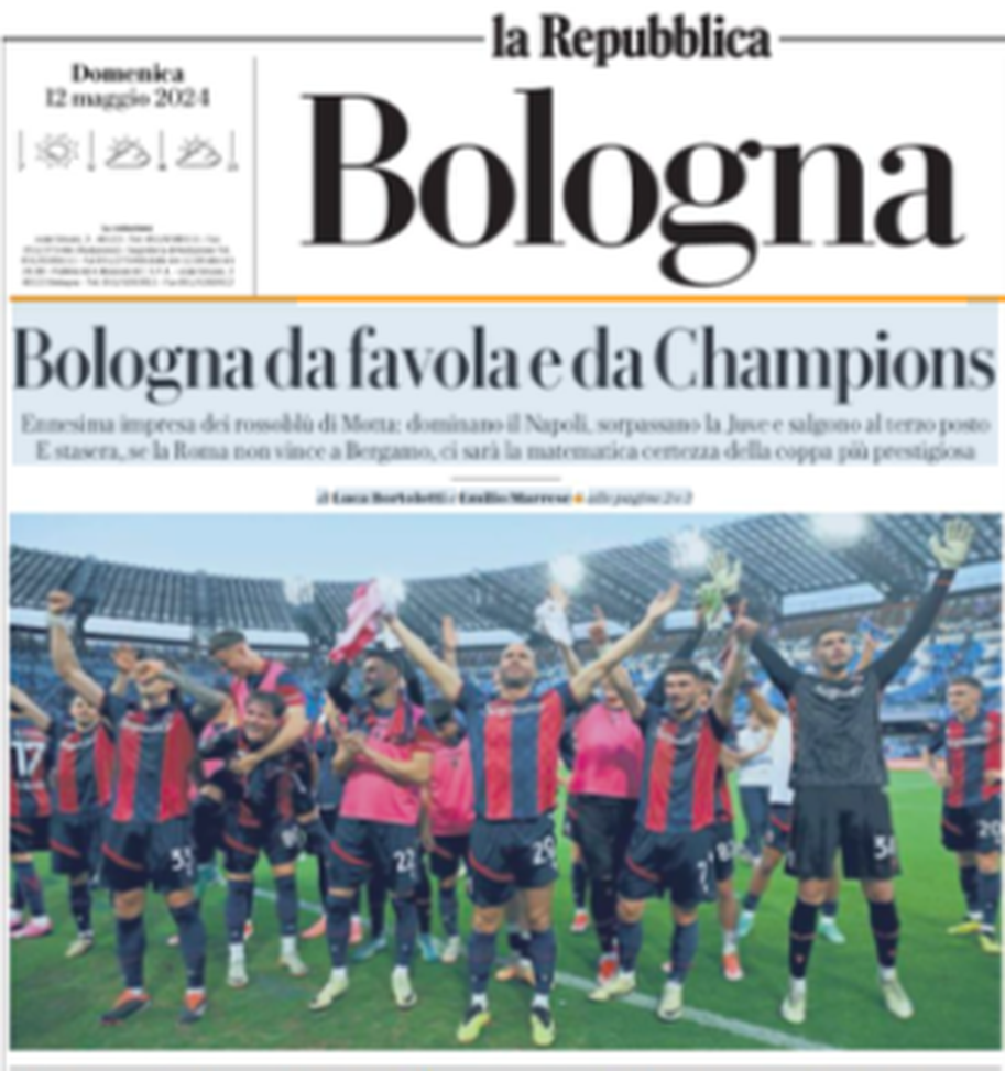 Bologna ad un passo dalla Champions: le aperture dei giornali