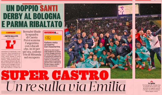 Gazzetta scrive 'Doppio Santi, derby al Bologna e Parma ribaltato. Un Super Castro re sulla via Emilia'.