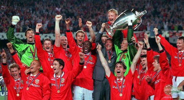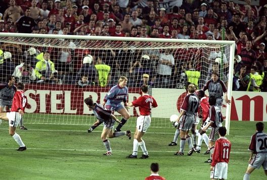 Solo 101 secondi dopo avvenne l'incredibile: su calcio d'angolo battuto da Beckham, la palla fu colpita di testa da Sheringham, per arrivare in regalo al norvegese Ole Gunnar Solskjær, che appostato da vero cecchino, non perdonò la distratta difesa avversaria. L'impresa era compiuta, suggellata dalla splendida capriola del portiere Schmeichel; il calcio aveva voluto regalare un'ultima, forte, emozione al millennio che stava per andarsene.