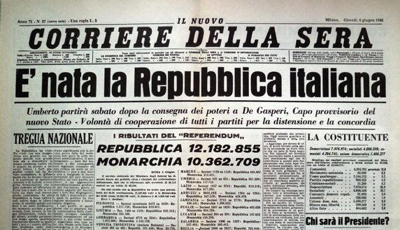 Il 10 giugno 1946, alle 18:00, nella Sala della Lupa a Montecitorio (Roma), la Corte di Cassazione proclamò il risultato del referendum e il giorno dopo, a Napoli, un gruppo di monarchici tentò di attaccare una sede del P.C.I. che aveva esposto un tricolore senza lo stemma sabaudo, ma una serie di raffiche sparate da un autoblindo della Polizia lasciarono a terra senza vita nove persone, mentre altre 150 rimanevano ferite.