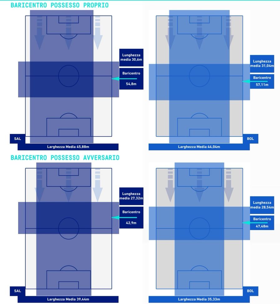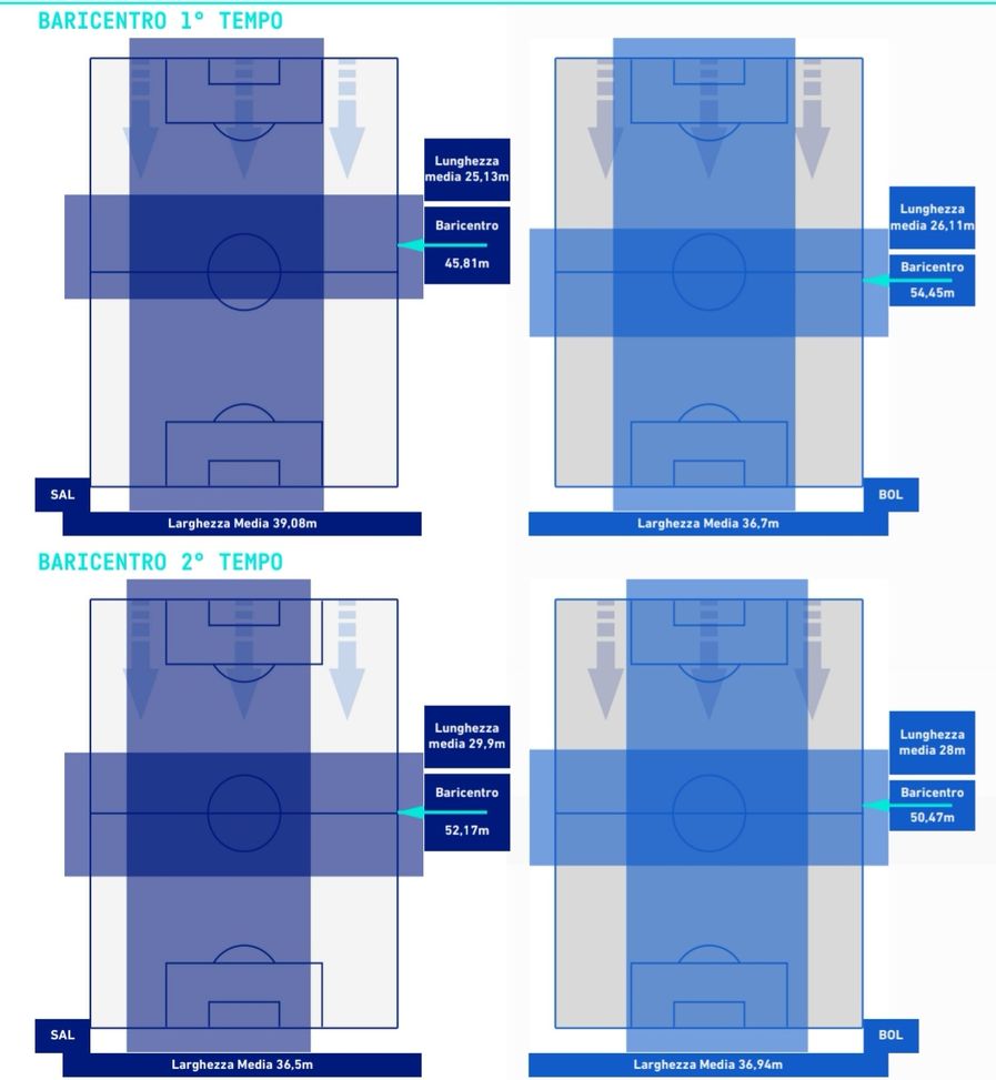 Importante evidenziare come la Salernitana abbia saputo raddrizzare il proprio baricentro nel secondo tempo di gata. Dai 45 metri della prima frazione, Paulo Sousa è stato capace di trascinarlo fino ai 52 di fine gara, garantendo una sostanziale tranquillità difensiva per i granata.