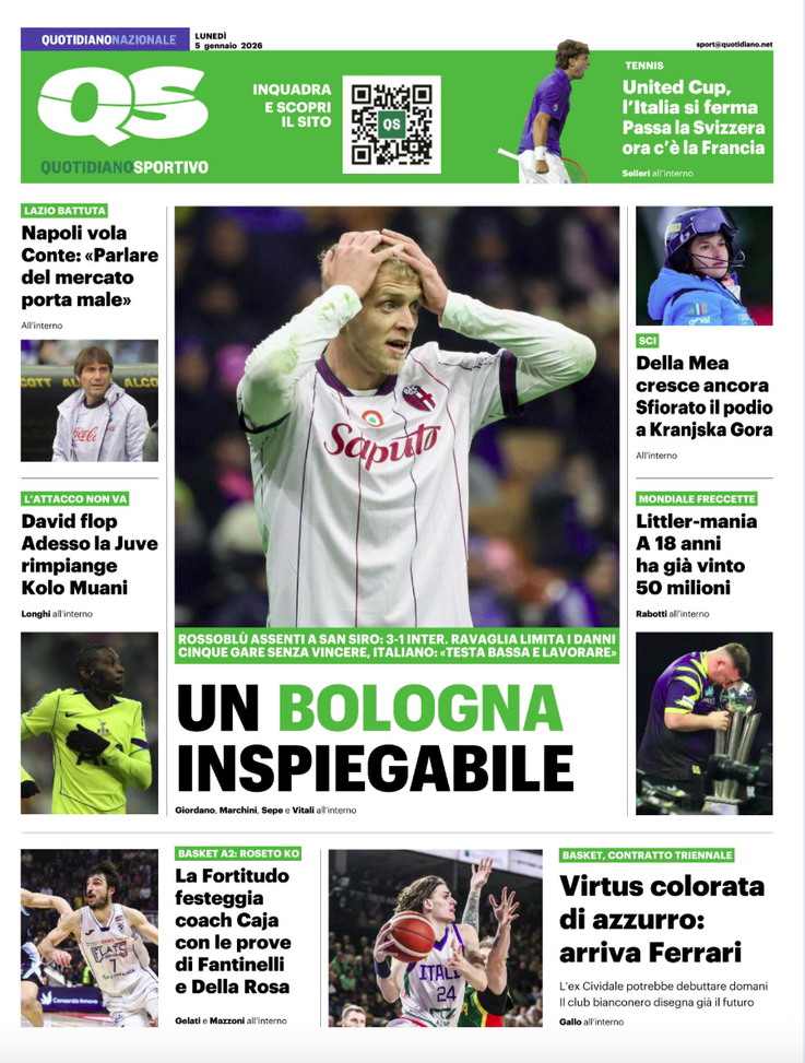 Non ha una spiegazione il Resto del Carlino che nel suo inserto sportivo titola 'Un Bologna inspiegabile'.