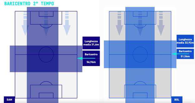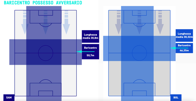 Bologna stavolta con baricentro più basso, non iperdifensivo ma comunque utile a non farsi schiacciare per poi trovare spazi sulla verticale al cospetto di una Samp più scoperta rispetto a quanto ha fatto il Monza.