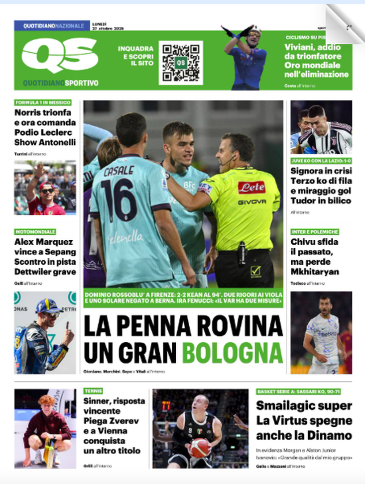 'La Penna rovina un gran Bologna' è invece il titolo del Quotidiano Sportivo.