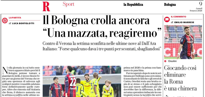 'Il Bologna crolla ancora, è una mazzata, reagiremo'
