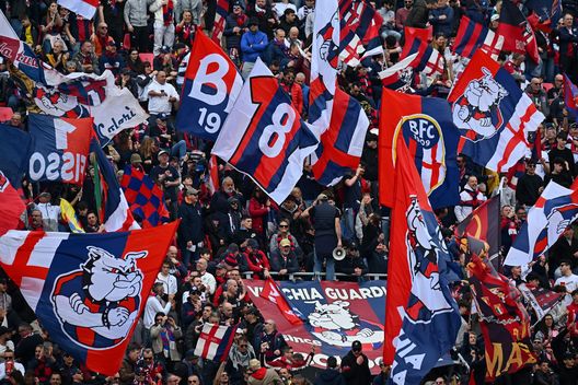 BOLOGNA, ITALY - MARCH 16: Fans of Bologna Fc during the Serie A match between Bologna and SS Lazio at Stadio Renato Dall'Ara on March 16, 2025 in Bologna, Italy. (Photo by Alessandro Sabattini/Getty Images)