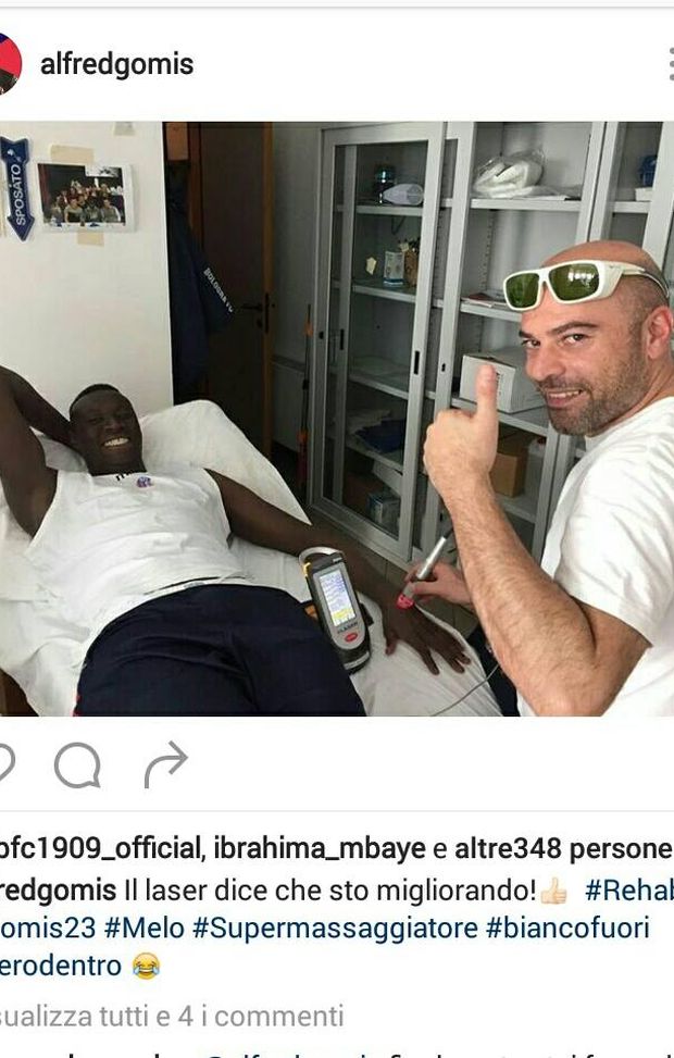 Gomis è in via di guarigione ed ha voluto postare sul suo profilo Instagram una foto per rassicurare i tifosi.