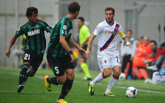 Tutti si aspettano la resurrezione della squadra bolognese contro il Sassuolo, ma non sarà così: nel giro di un quarto d'ora i padroni di casa sono già sul 2-0, frutto di un rigore (peraltro fin troppo generoso) assegnato all'attaccante Domenico Berardi il quale, dopo aver vinto un contrasto con il difensore avversario Cesare Natali, si invola in area andando a sbattere contro Andrea Mantovani. Per Damato è rigore, dal dischetto lo stesso Berardi si incarica della battuta spiazzando il portiere Gianluca Curci. E' il dodicesimo minuto. Quattro minuti dopo Antonio Floro Flores, lasciato tutto solo, lascia partire un tiro preciso che si insacca alle spalle di Curci anche grazie ad una deviazione del centrocampista sloveno del Bologna Renè Khrin, è il raddoppio e siamo al sedicesimo.