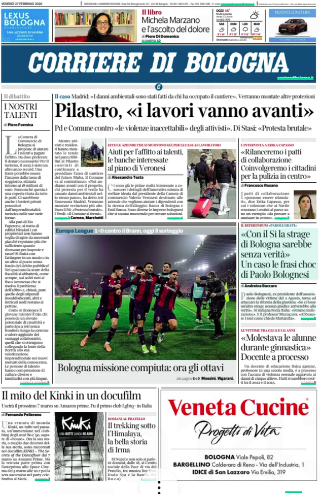 'Missione compiuta, ora gli ottavi' apre il Corriere di Bologna.