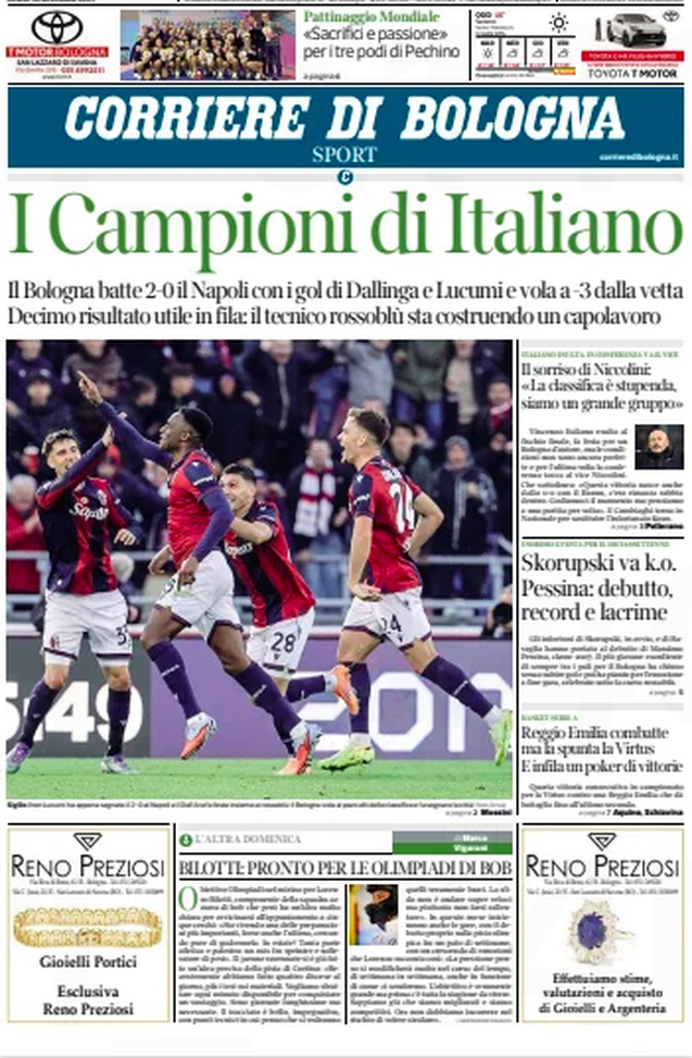 'I Campioni di Italiano' è invece il titolo scelto dal Corriere di Bologna in prima pagina