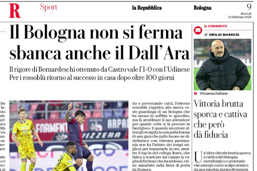 'Il Bologna non si ferma' è il titolo dei Repubblica: sbancato anche il Dall'Ara.
