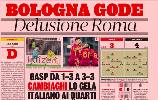 'Bologna gode, delusione Roma' è il titolo scelto da Gazzetta.