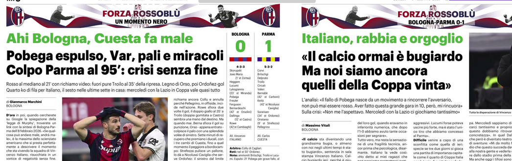 'Pali e miracoli: colpo Parma al 96': è crisi senza fine' scrive il Quotidiano Sportivo