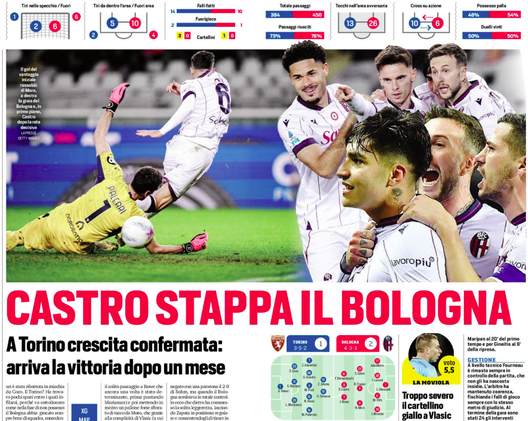'Castro stappa il Bologna' scrive Stadio: a Torino crescita confermata'