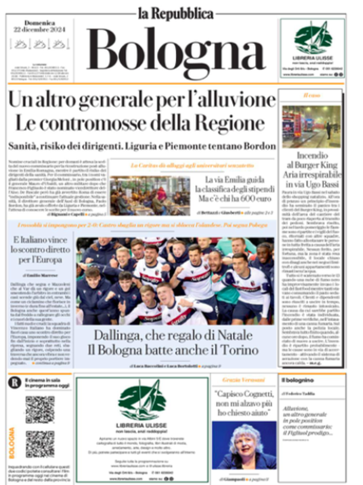 Regalo di Natale di Dallinga, scrive Repubblica Bologna, i rossoblù battono anche il Toro.