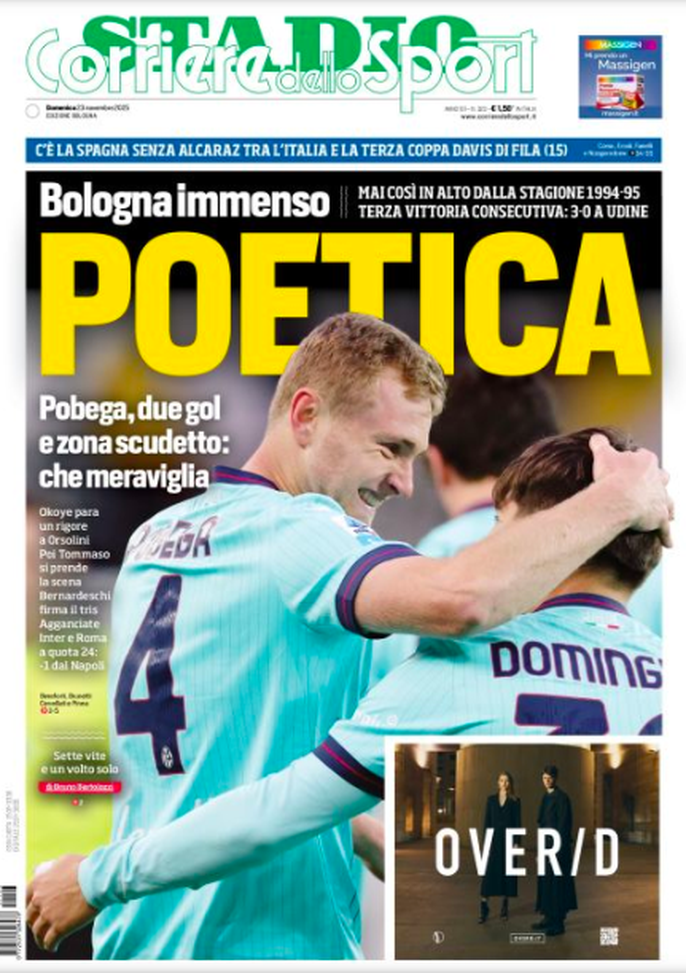 'Poetica' è invece il titolo del Corriere dello Sport Stadio. Pobega, due gol e zona scudetto: che meraviglia.