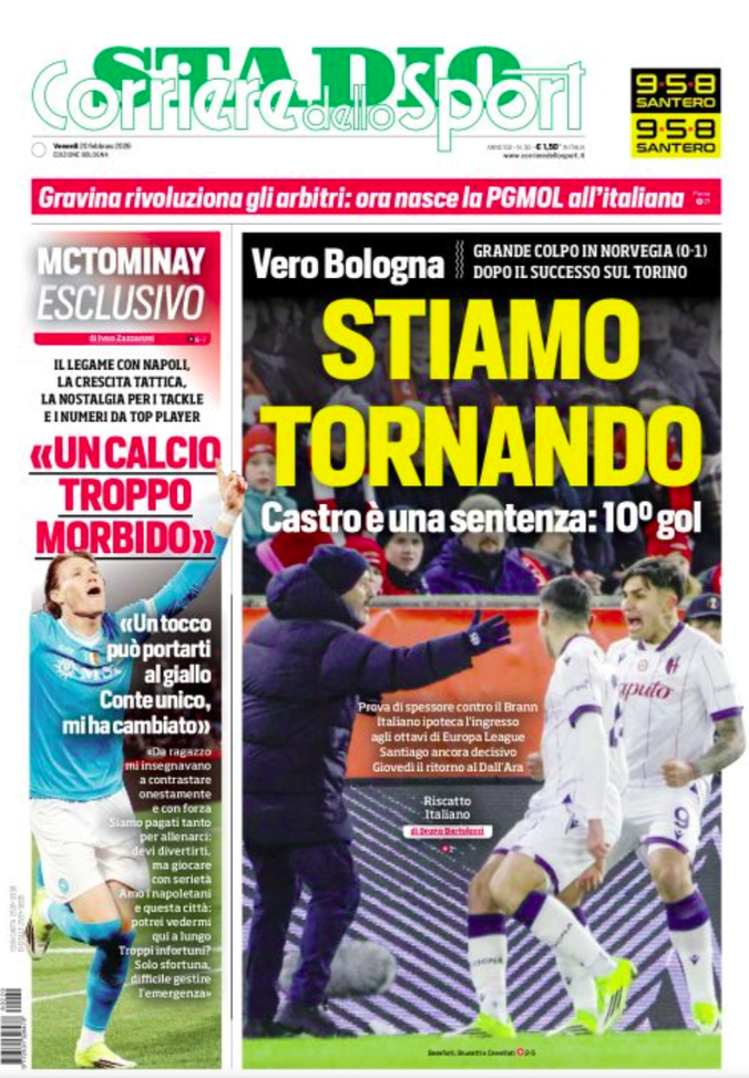 'Stiamo arrivando è il titolo del Cor Sport dopo lo zero a uno griffato Castro.