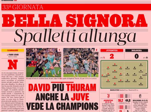 Si concentra sulla Juve la Gazzetta della Sport: bella signora, Spalletti allunga.