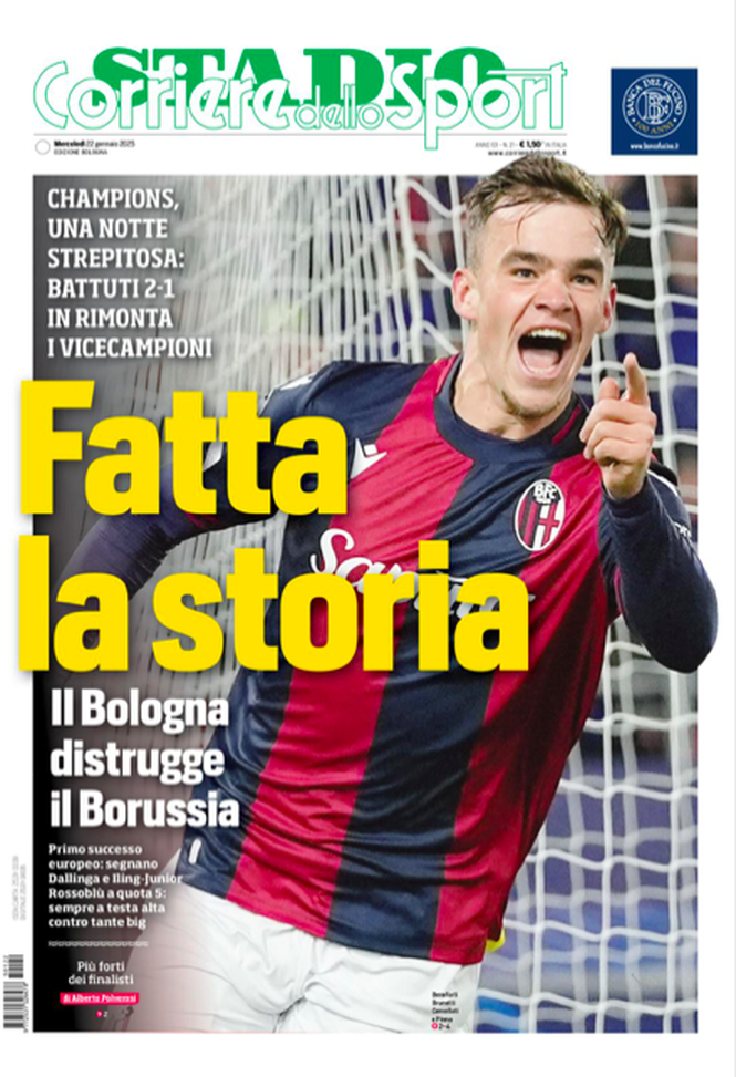 'Fatta la storia', è invece il titolo del Cor Sport con l'immagine di Dallinga che campeggia in prima pagina.