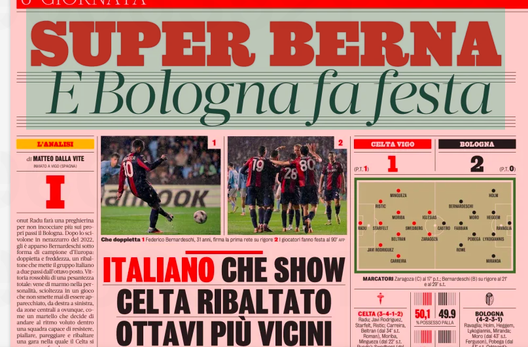 'Super Berna, e Bologna fa festa. Italiano che show, Celta ribaltato e ottavi più vicini' scrive Gazzetta dello Sport.