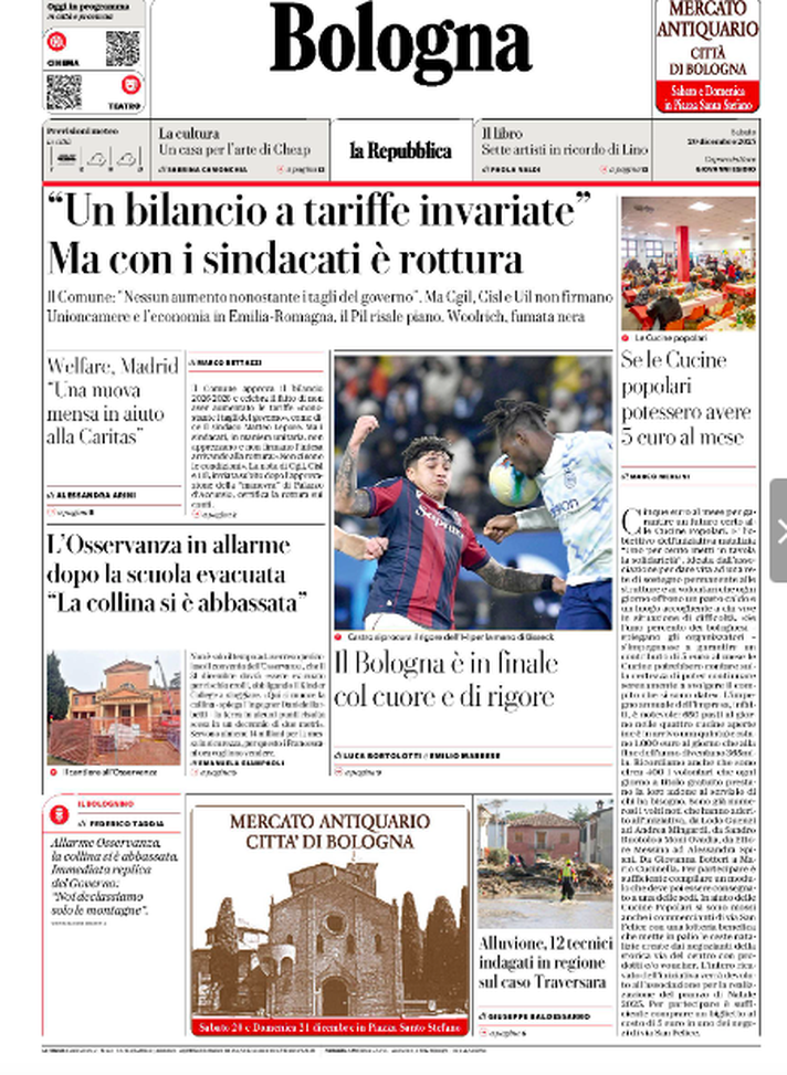 'Il Bologna è in finale col cuore e di rigore' scrive Repubblica Bologna