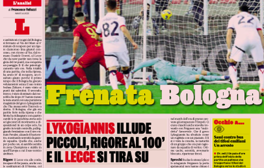 La Gazzetta dello Sport va più sulla cronaca e parla di 'Frenata Bologna' dopo il pareggio di Lecce agguantato da Piccoli al minuto 100.