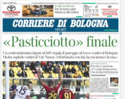 Gioco di parole con la prelibatezza salentina per il Corriere di Bologna che titola 'Pasticciato finale'