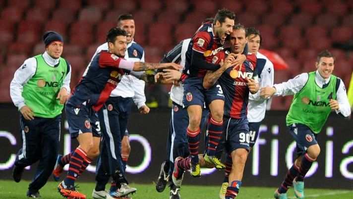 Rossoblù emiliani ed azzurri partenopei si studiano attentamente e al 10' un tiro dalla lunga distanza di Kone non impensierisce più di tanto Reina, mentre al 18' risponde il Napoli con una punizione battuta da Callejon, ma la conclusione di testa da parte di Hamsik manda la palla addosso a Curci che para senza problemi. Al 31' la svolta della partita con Callejon, lesto a ribadire in gol una conclusione potente di Hamsik non trattenuta da Curci e, dopo un gol annullato ad Higuain per fuorigioco al 39', sei minuti dopo arriva il raddoppio dei padroni di casa con Hamsik il quale, servito ottimamente da Zuniga in area, scarta Curci in uscita e manda il pallone in fondo al sacco: oramai il Napoli ha aperto le ali, mentre il Bologna è rimasto amaramente a terra.