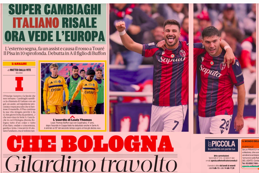 'Super Cambiaghi, Italiano risale e vede l'Europa', scrive Gazzetta. Che Bologna, Gilardino travolto.