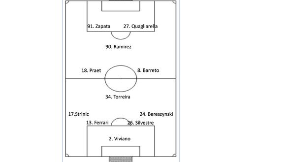 Secondo i dettami tattici di Giampaolo la Sampdoria si schiera sempre con un 4-3-1-2: Viviano, ex conoscenza rossoblù, è un portiere affidabile, abile soprattutto nel rinvio lungo. I due terzini sono particolarmente atletici e spingono con continuità sulla fascia dando soluzioni di gioco in ampiezza. I due centrali di difesa si completano: Silvestre è molto fisico, forte di testa e attento al posizionamento, mentre Ferrari è abile nella gestione palla al piede ed è maggiormente in grado di impostare rispetto al compagno di reparto argentino, decisamente più "ruvido". Torreira è la principale fonte di gioco della squadra genovese, intelligentissimo tatticamente, sempre posizionato bene, si mette sempre a sostegno del compagno; le due mezzali, in questo caso Barreto Praet, sono molto dinamiche e dotate di buona tecnica, soprattutto il belga. Ramirez dà fantasia alla fase offensiva, non è molto dinamico ma denota buone capacità tecniche, visione e tempi di gioco, e infine i due attaccanti Zapata-Quagliarella: il colombiano è fortissimo fisicamente, ha buona tecnica e progressione, ed è anche pericoloso nel gioco aereo, Quagliarella porta esperienza, finalizzazione e sacrificio.