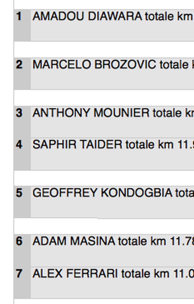 La squadra nel primo tempo aveva corso tantissimo, non ci sorprendiamo se nella Top 7 dei giocatori che hanno percorso più Chilometri 5 avevano la maglia rossoblù.